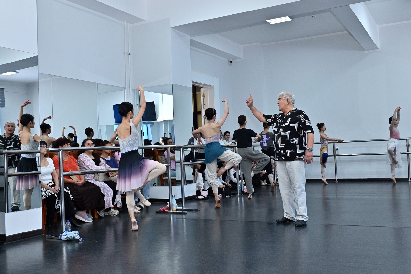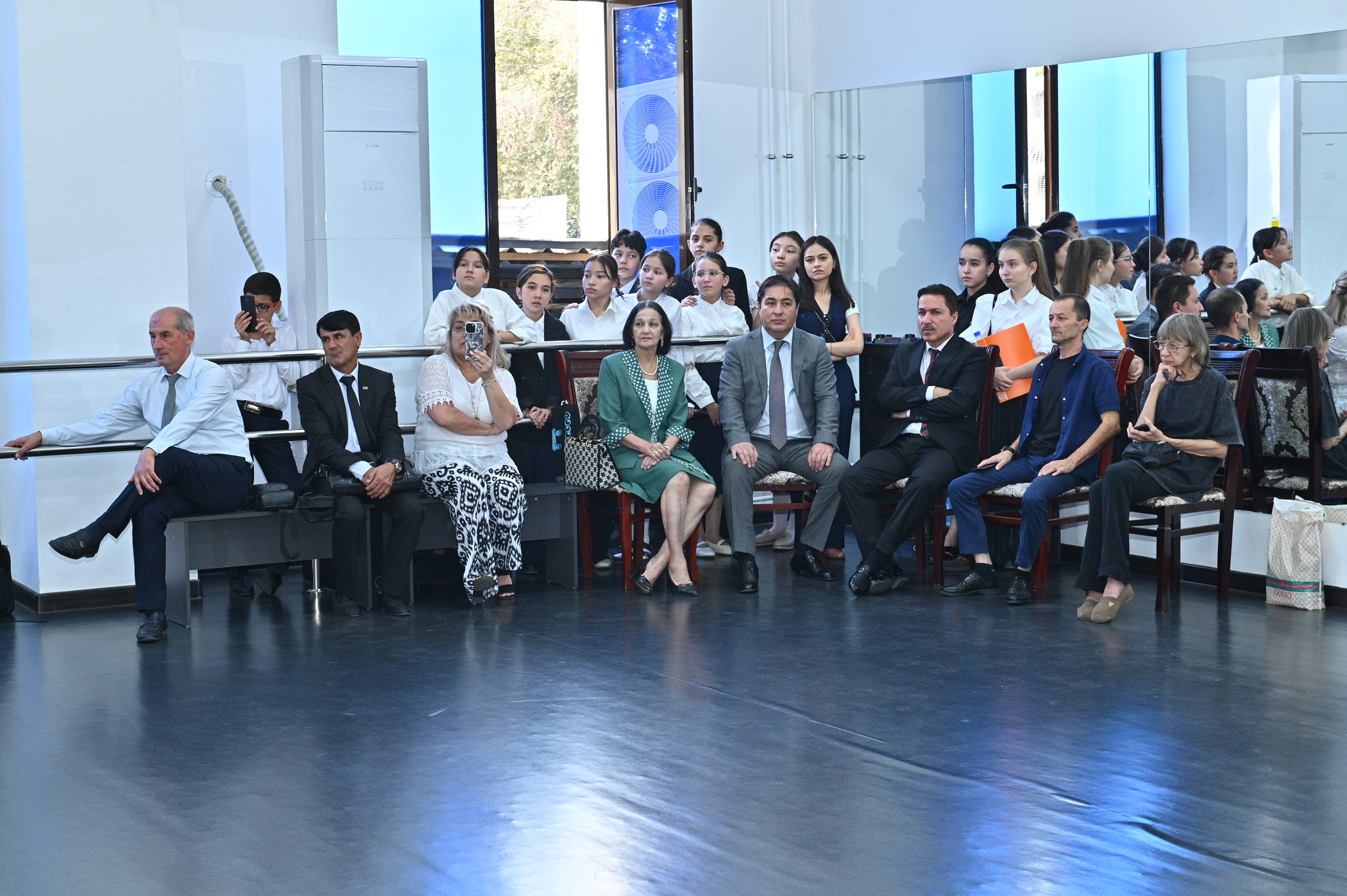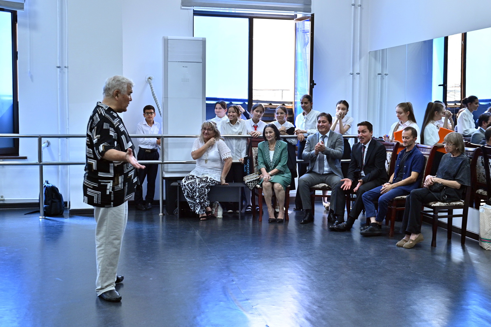 Мэтр сцены Музаффар Бурханов поделился с молодыми артистами профессиональными секретами. Среди участников были как солисты балетной труппы театра, так и совсем юные воспитанники колледжа, которым посчастливилось увидеть выдающегося танцора и постановщика за работой. Аккомпанировала им именитая пианистка Нодира Бурханова.