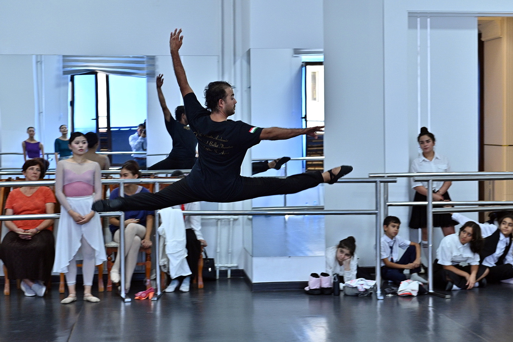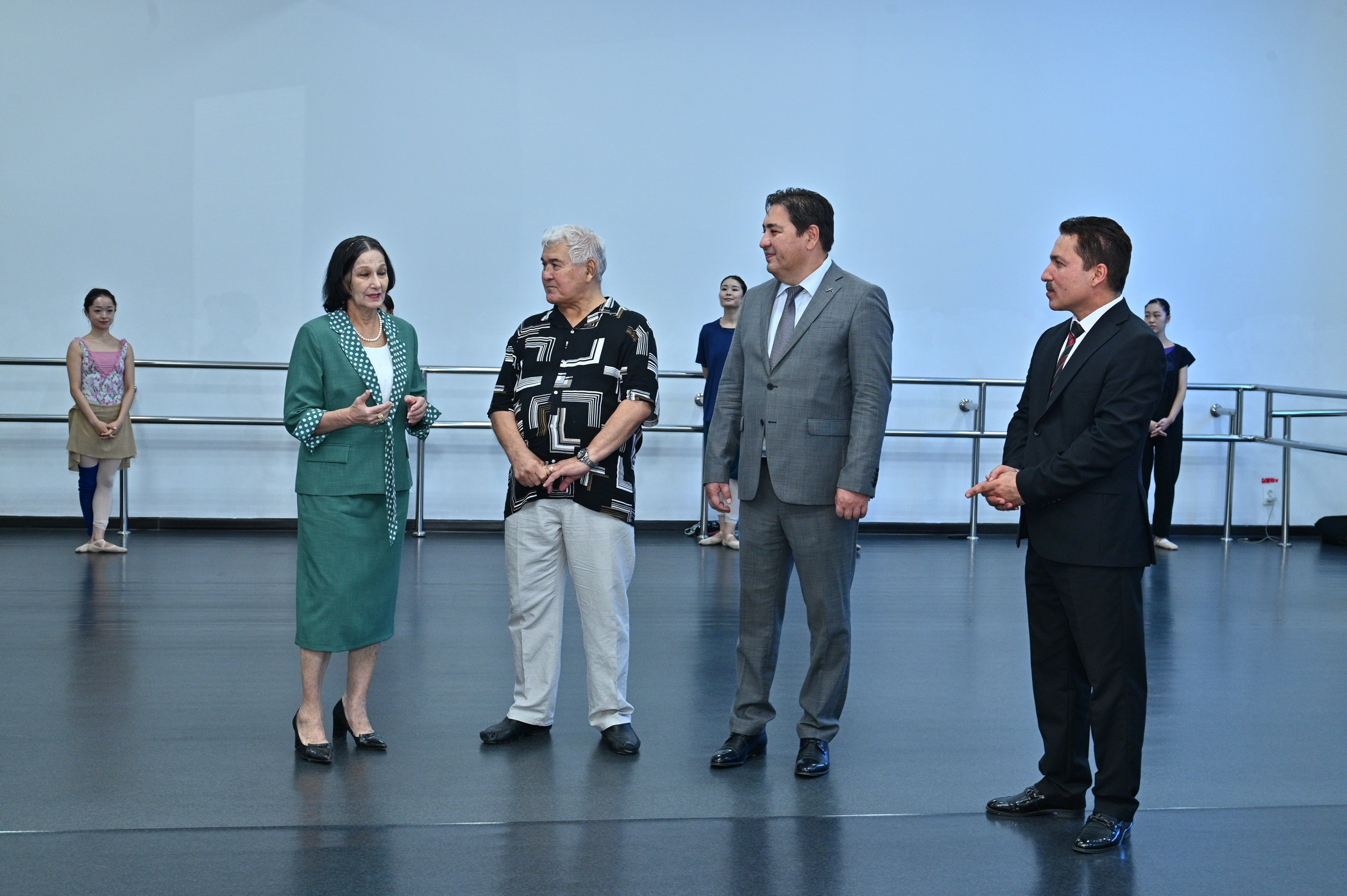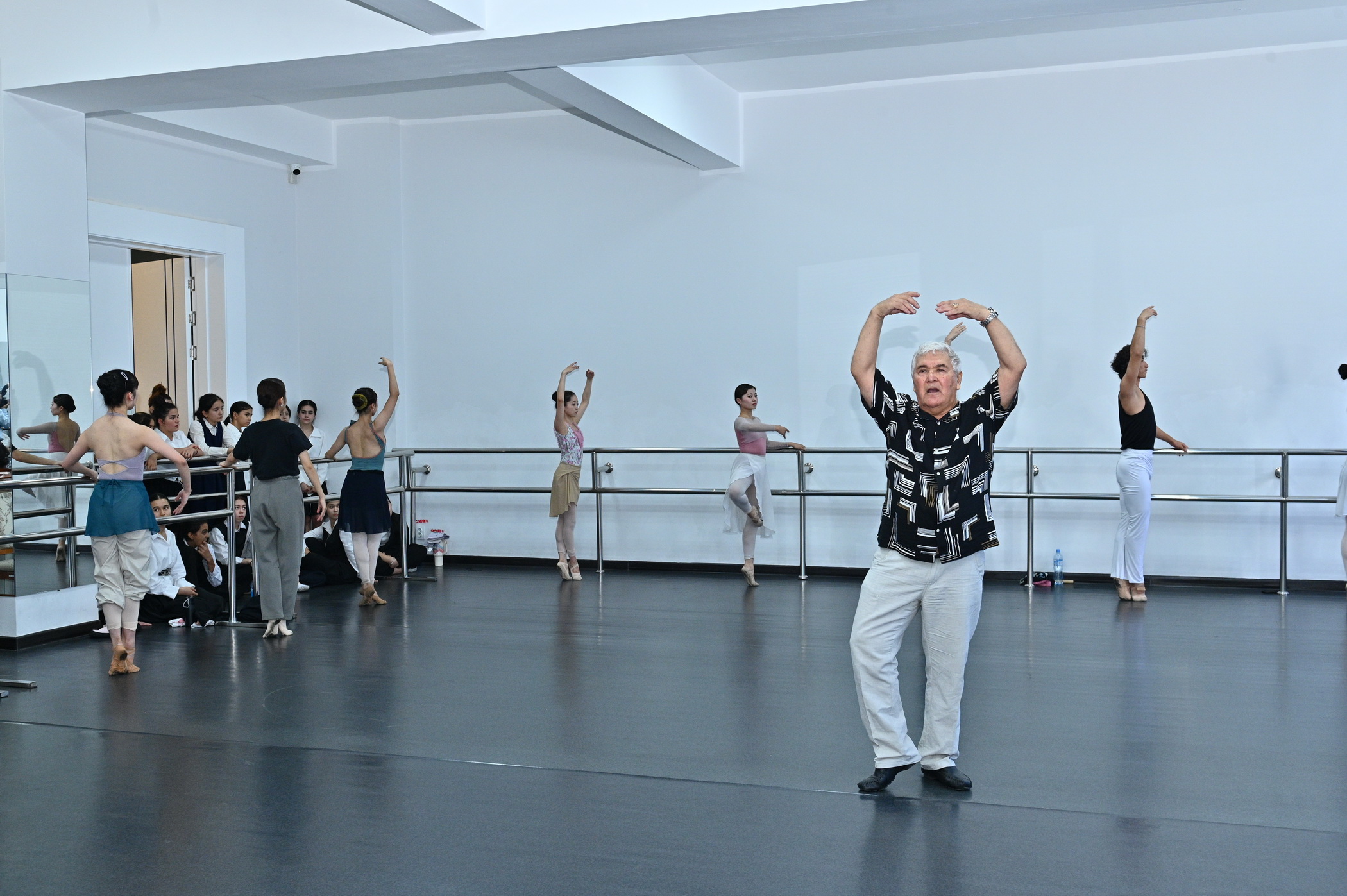 Мэтр сцены Музаффар Бурханов поделился с молодыми артистами профессиональными секретами. Среди участников были как солисты балетной труппы театра, так и совсем юные воспитанники колледжа, которым посчастливилось увидеть выдающегося танцора и постановщика за работой. Аккомпанировала им именитая пианистка Нодира Бурханова.
