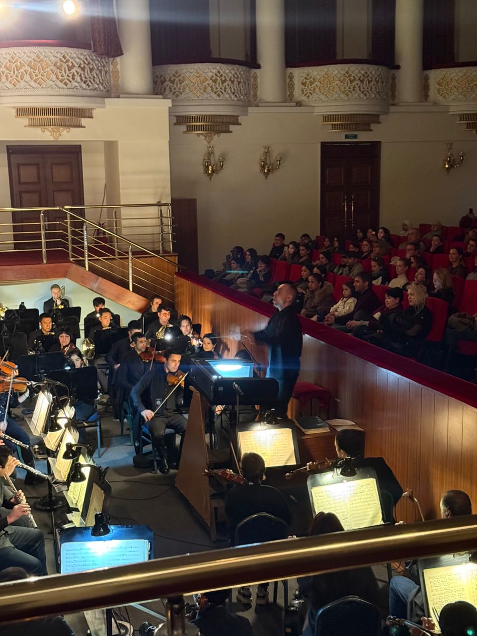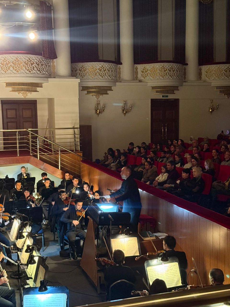 За пультом оркестра - молодой и перспективный дирижёр из числа национальных кадров Сухроб Фозилов.