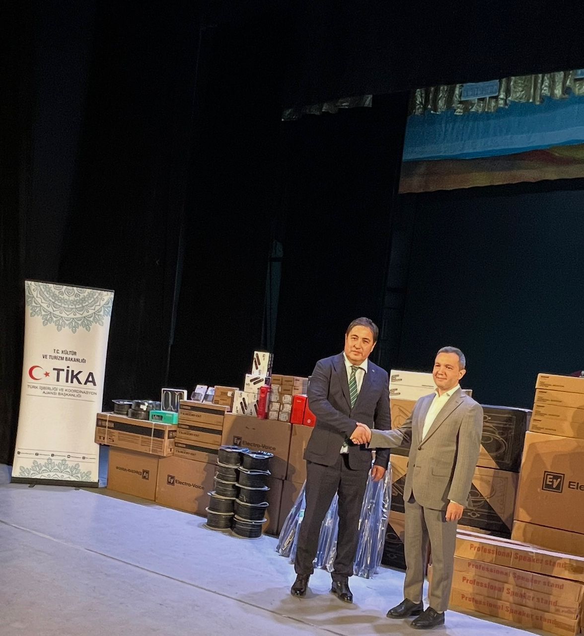 Глава Турецкого агентства по сотрудничеству и координации на безвозмездной основе передал театру инновационное звуковое оборудование. Цифровой пульт в полной комплектации, разные виды микрофонов, акустическая система, активные мониторы, - это только часть общего списка.